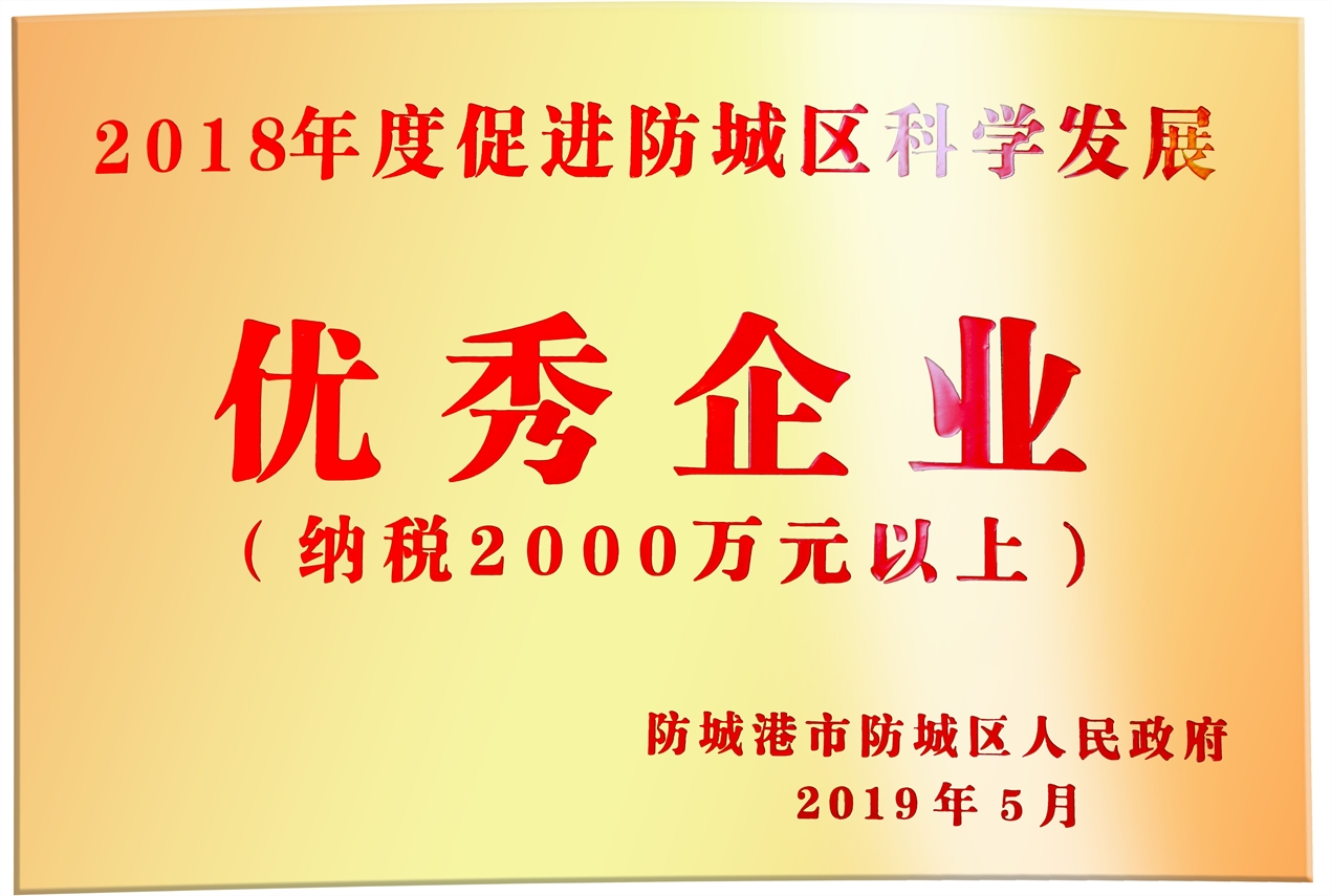 2018年度促進防城區(qū)科學發(fā)展優(yōu)秀企業(yè)